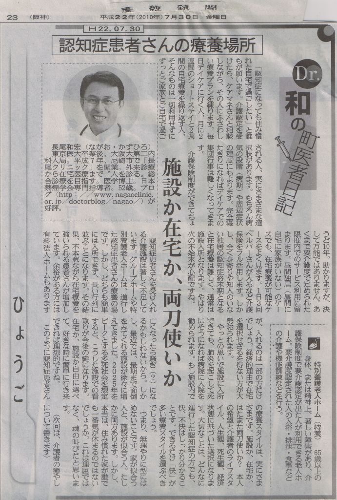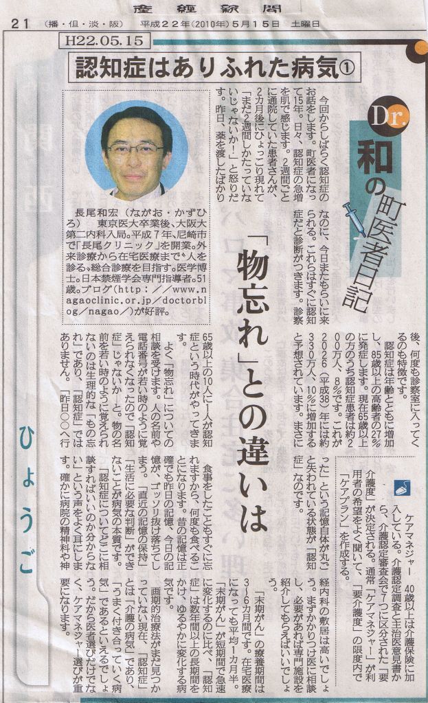 産経新聞(兵庫版)「Dr.和の町医者日記」